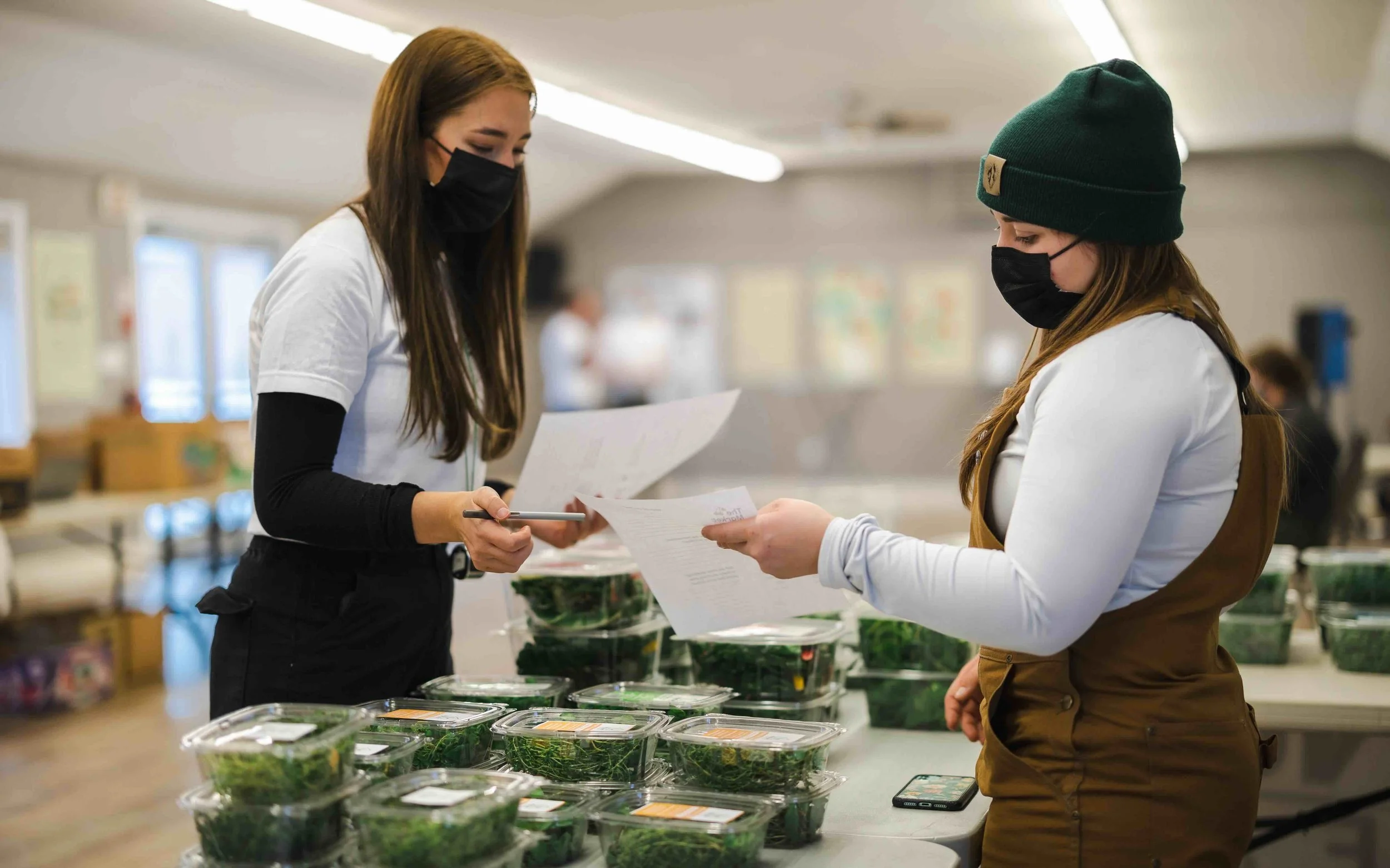 In an image capturing her work, Erika Mahoney, a designer at J5, is seen immersed in a pay-what-you-can market, part of a project aimed at addressing food insecurity. Her presence in the market reflects J5's commitment to understanding user needs at a grassroots level. Erika's hands-on approach allowed her to engage directly with individuals, observing their interactions with the service while fostering an environment of dignity and kindness. Her work in this setting exemplifies J5’s human-centered design philosophy, ensuring that solutions not only meet practical needs but also respect the lived experiences of those they serve.